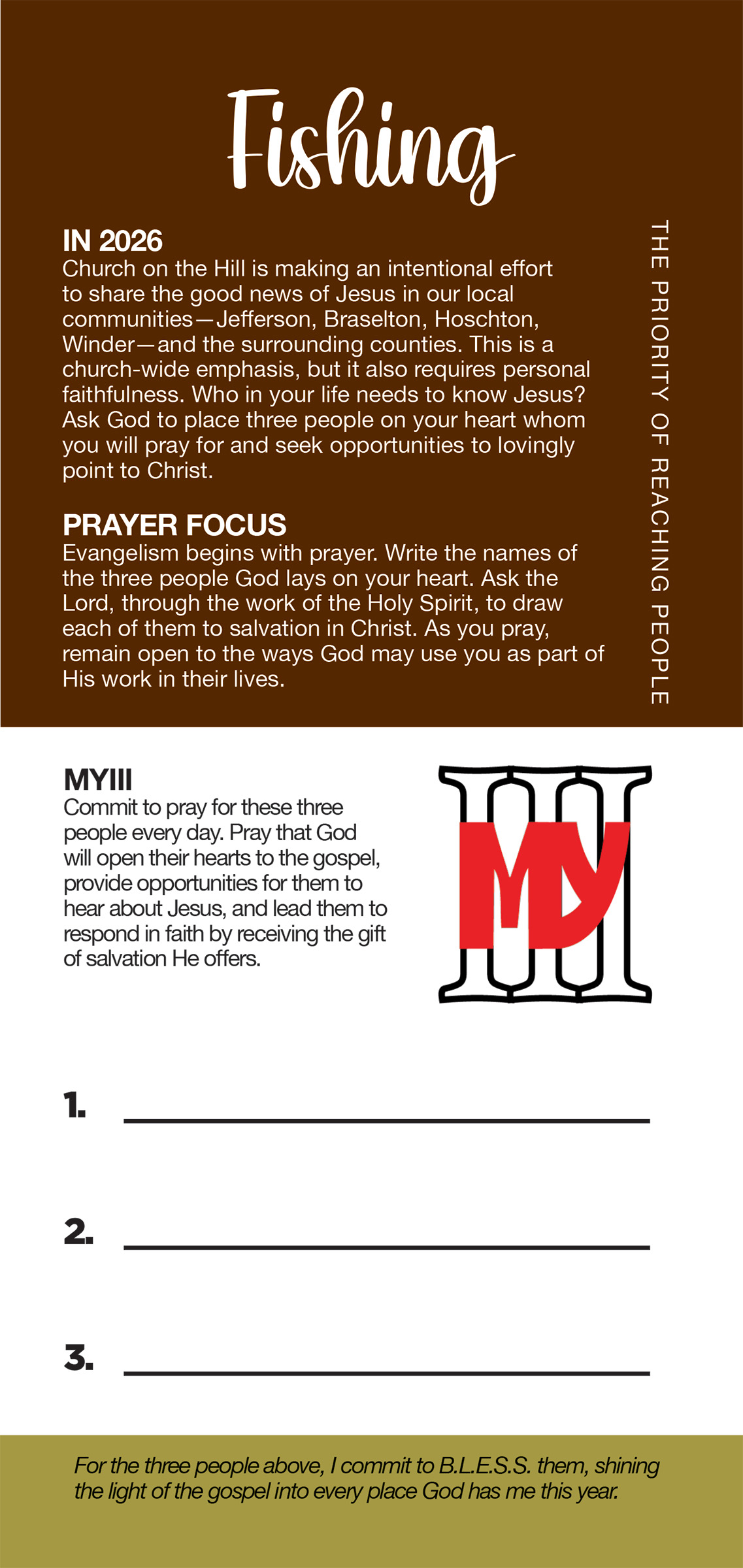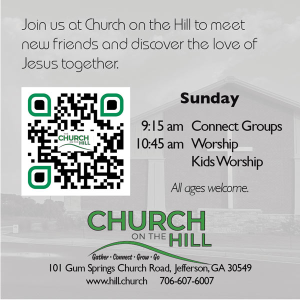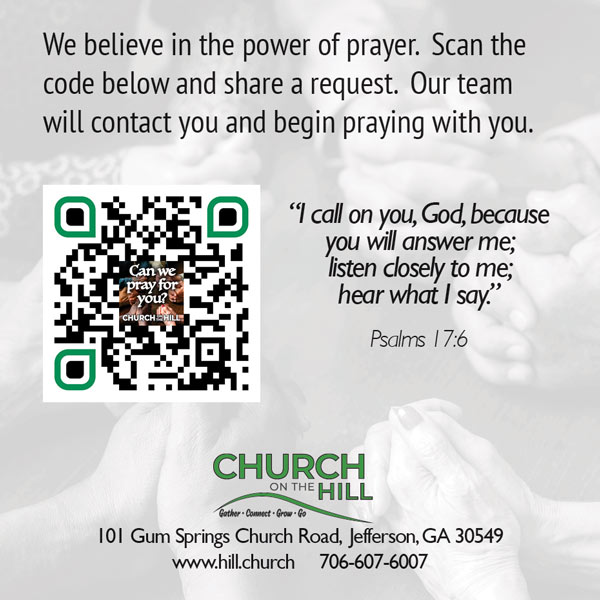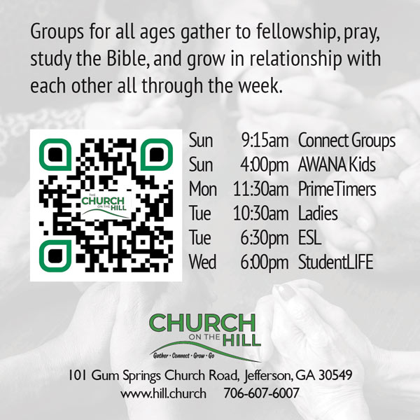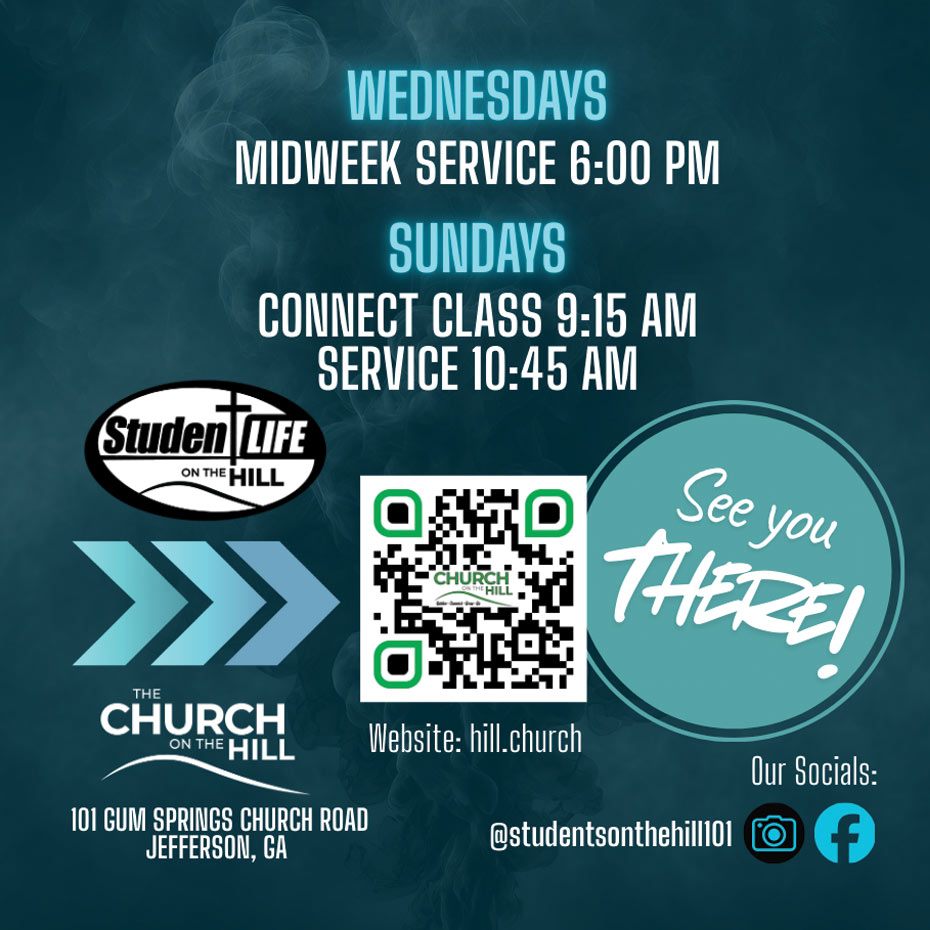 In 2026, Church on the Hill is making an intentional effort to share the good news of Jesus in our local communities—Jefferson, Braselton, Hoschton, Winder— and the surrounding counties. This is a church-wide emphasis, but it also requires personal faithfulness. Who in your life needs to know Jesus?
