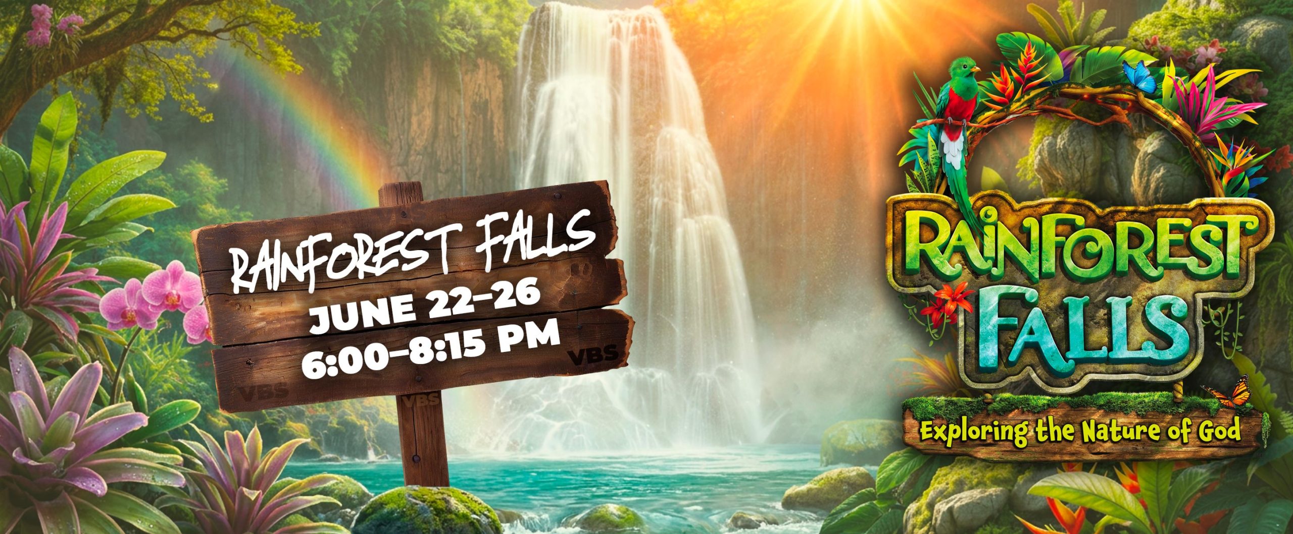 Step through the mist into Rainforest Falls, overflowing with wild waterfalls, towering trees, and colorful creatures. Beneath a canopy of chattering birds and howling monkeys, kids plunge into a lifelong adventure of discovering the nature of God. They’ll explore what it means to be rooted in relationship with God, their creator, a safe place in life’s storms.